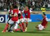 Hráči Arsenalu oslavujú úvodný gól Joea Willocka (druhý sprava) do bránky Frankfurtu v zápase F-skupiny Eintracht Frankfurt - Arsenal Londýn 1. kola skupinovej fázy Európskej ligy vo Frankfurte 19. septembra 2019.