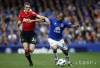Futbalista Evertonu Steven Pienaar (vpravo) a Darren Fletcher z Manchestru United v súboji o loptu v stretnutí anglickej futbalovej Premier League