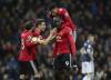 Futbalista Manchesteru United Romelu Lukaku (9) sa teší so spoluhráčmi po strelení gólu do siete West Bromwich Albionu