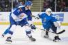 Adam Ružička (21) strieľa proti kazachstanskému brankárovi Demidovi Jeremejevovi (30) počas 1. tretiny zápasu MS 20 v hokeji.