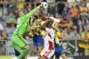 Na snímke vľavo brankár Trenčína Adrián Chovan, druhý zľava Ákos Szarka (DAC) a tretí zľava Rafael Da Silva (Trenčín) v zápase 5. kola futbalovej Fortuna ligy medzi FK DAC 1904 Dunajská Streda - AS Trenčín 13. augusta 2016 v Senci. ...