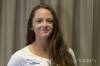 Na snímke slovenská tenistka Viktória Kužmová, víťazka juniorskej štvorhry na grandslamovom turnaji US Open počas tlačovej konferencie 14. septembra 2015 v Bratislave.