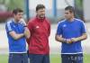 Na snímke zľava asistent trénera Ladislav Borbély, tréner Krizstián Németh a asistent trénera DAC Dunajská Streda Branislav Fodrek .