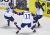 Na snímke radosť hráčov Veľkej Británie po výhre v predĺžení, vpravo autor víťazného gólu Ben Davies v zápase základnej A-skupiny Francúzsko - Veľká Británia na 83. majstrovstvách sveta v ľadovom hokeji v Košiciach 20. ...