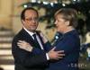 Francúzsky prezident Francois Hollande zdraví nemeckú kancelárku Angelu Merkelovú