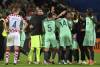 Hráč Chorvátska Ivan Perišič (vľavo) sa pozerá na hráčov Portugalska, ktorí oslavujú výhru 1:0 v osemfinálovom zápase na majstrovstvách Európy 2016 nad Chorvátskom vo francúzskom Lens 25. júna 2016. Portugalsko zvíťazilo 1:0. ...