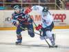 Na snímke sprava Marek Bartánus (Banská Bystrica), Andrej Košarišťan (Nové Zámky) počas zápasu 54. kola Tipsport Ligy v hokeji HC'05 iClinic Banská Bystrica - HC Nové Zámky v Banskej Bystrici 24. februára 2019.
