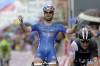 Na archívnej snímke sa taliansky cyklista Elia Viviani teší z víťazstva