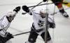 Hokejista Los Angeles Kings Slovák Marián Gáborík (vpravo) a spoluhráč Anže Kopitar zo Slovinska sa tešia po strelení gólu