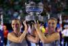 Sara Erraniová a Roberta Vinciová s trofejou pre víťaza na Australian Open v ženskej štvorhre.