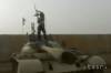 Iracký militant stojí na tanku so zbraňou v ruke.