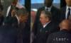 Americký prezident Barack Obama (vľavo) a kubánsky prezident Raúl Castro si podávajú ruky na smútočnej rozlúčke s bývalým juhoafrickým prezidentom a bojovníkom proti apartheidu Nelsonom Mandelom na štadióne FNB v černošskej ...