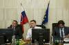 Na snímke zľava minister financií SR Peter Kažimír, premiér SR Robert Fico a minister vnútra SR Robert Kaliňák