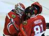 Marián Hossa oslavuje s brankárom Scottom Darlingom.