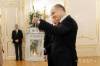 Na archívnej snímke prezident SR Andrej Kiska s lampášom s betlehemským svetlom počas odovzdania betlehemského svetla - plamienka z Baziliky Narodenia Pána vo Svätej zemi v Bratislave 13. decembra 2014.