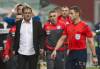 Na snímke vľavo tréner slovenskej reprezentácie do 21 rokov Ivan Galád, uprostred jeho asisitent Norbert Hrnčár a vpravo hlavný rozhodca Steven McLean zo Škótska po zrušenom pokutovom kope, ktorý nariadil. Pár minút na to bol ...
