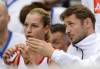 Na snímke vľavo slovenská tenistka Dominika Cibulková a kapitán slovenského fedcupového tímu Matej Lipták počas tenisového zápasu proti Nemke Andrei Petkovicovej vo štvrťfinále svetovej skupiny Pohára federácie Slovensko - Nemecko ...