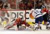 Český útočník Tampy Palát prekonáva Švéda Lunqvista.