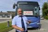 Na snímke vodič autobusu František Kvasnica ukazuje oceneie za 2,25 milióna kilometrov bez nehody.