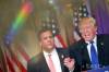 Republikánski prezidentskí kandidáti zľava Donald Trump aTred Cruz počas televíznej debaty Republikánskej strany na CNN 15. decembra 2015 v Las Vegas.