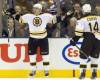 Boston Bruins o svojom víťazstve rozhodli v druhej tretine, ktorú aj zásluhou dvoch dvojgólových strelcov Tylera Seguina (druhý z ľava) a Michaela Rydera (prvý z ľava) vyhrali 5:1.