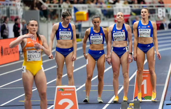 Slovenské atlétky obsadili vo finále štafety 4x400 m na halových MS v poľskej Toruni 6. miesto časom 3:32,77 min. Kvarteto Daniela Ledecká, Viktória Korbová, Martina Segečová a Emma Zapletalová delilo od stupňov víťazov 6,73 s. Na trati 60 m prek. zažiarila v nedeľu Bahamčanka Devynne Charltonová, keď vyrovnala vlastný svetový rekord časom 7,65 a na podujatí triumfovala tretíkrát v sérii.