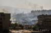 Dym stúpa z koaličných leteckých náletov na pozície militantov Islamského štátu (IS) počas bojov v západnej časti mesta Rakka na severovýchode Sýrie 18. júla 2017.