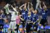 Hráči Interu Miláno sa tešia po víťazstve v zápase F-skupiny 3. kola skupinovej fázy Ligy majstrov Inter Miláno - Borussia Dortmund 23. októbra 2019 v Miláne. Vľavo Slovák Milan Škriniar.