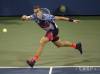 Slovenský tenista Lukáš Lacko odvracia loptičku v stretnutí s Američanom Jamesom Blakeom v 1. kole mužskej dvojhry na US Open v New Yorku 27. augusta 2012.