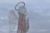 Na snímke detail takmer 13 metrov vysokej a 850 kilogramov vážiacej kovovej sochy anjela, ktorá sa nachádza na kruhovom objazde v strede mesta Poprad, 29. novembra 2019.