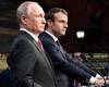Na archívnej snímke vľavo ruský prezident Vladimir Putin a vpravo francúzsky prezident Emmanuel Macron.