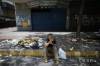 Bezdomovec sedí na obrubníku medzi odpadkami na ulici vo venezuelskom Caracase, archívna snímka.