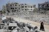 Palestínčanka kráča okolo trosiek zničených domov, archívna snímka.