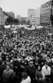 Manifestácia Bratislavčanov na Námestí SNP 24. novembra 1989. Na snímke skupina Bratislavčanov získava aktuálne informácie z vývesnej tabule na Národnom divadle.
