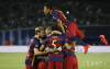 Hráči FC Barcelony sa radujú z gólu v zápase o európsky futbalový Superpohár 2015 medzi FC Barcelona - Sevilla FC v gruzínskom meste Tbilisi 11. augusta 2015.