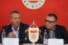 Na archívnej snímke zľava primátor mesta Banská Bystrica Ján Nosko a prezident Slovenského futbalového zväzu (SFZ) Ján Kováčik počas tlačovej konferencie o budúcnosti FK Dukla Banská Bystrica, jeho financovania a budúcnosti ...