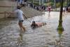 Snaha o surfovanie na slávnej ulici Sunsed Boulevard po prasknutí vodovodného potrubia