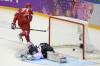Na snímke vpravo prekonaný slovenský brankár Ján Laco, vľavo premieňa samostatný nájazd ruský hráč Iľja Kovaľčuk v zápase A-skupiny turnaja mužov Rusko - Slovensko na XXII. zimných olympijských hrách v Soči 16. februára 2014. ...