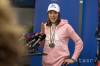 Na snímke slovenská lyžiarka Petra Vlhová hovorí počas brífingu po prílete zo Švédska na letisko M.R. Štefánika 20. februára 2019 v Bratislave. Zlatú medailu si vybojovala na MS v obrovskom slalome, striebro má v kombinácii a bronz ...