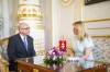 Na snímke vľavo predseda Najvyššieho kontrolného úradu (NKÚ) Karol Mitrík a vpravo prezidentka SR Zuzana Čaputová počas prijatia v Prezidentskom paláci 8. októbra 2019 v Bratislave.