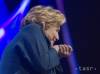 Hillary Clintonová reaguje počas prejavu na hodenie topánky.