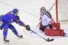 Na snímke vľavo Filip Krivošík (Slovensko) a brankár Andrej Tichomirov (Rusko) v zápase Rusko - Slovensko počas Nemeckého pohára 2019 v Krefelde 9. novembra 2019.