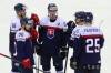Na snímke slovenskí hokejisti zľava Juraj Valach, Tomáš Tatar, Martin Marinčin, Richard Pánik a Marek Viedenský