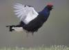 Na snímke tetrov hoľniak (Lyrurus tetrix) sa predvádza na poli asi 65 kilometrov severozápadne od Minska v Bielorusku v stredu 25. apríla 2018.