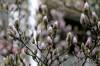 Na snímke pučiace kvety magnólie medzi obytnými domami v Starom meste v Bratislave 19. marca 2019.