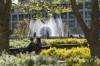Na archívna snímke ľudia si užívajú teplý slnečný jarný deň na Hodžovom námestí v Bratislave v piatok 24. apríla 2015.