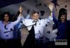 Na snímke zľava Lucia Nicholsonová, predseda SaS Richard Sulík, podpredseda strany Ľubomír Galko a podpredsedníčka strany Jana Kiššová oslavujú prvé predbežné odhady výsledkov volieb do Národnej rady Slovenskej republiky počas ...