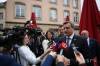 Na snímke predseda NR SR Andrej Danko odpovedá na otázky novinárov po stretnutí s tamojším predsedom Poslaneckej snemovne Marsom Di Bartolomeom.