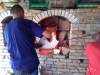 Výrobu ručne valcovaného skla predvádzajú návštevníkom VIII. Bzovských sklárskych dní v Dolnej Bzovej v okrese Lučenec 8. septembra 2018 poslední novohradskí sklári. Oheň v unikátnej Hupkovej peci, ktorú v strede obce postavili ...