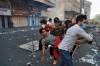 Na snímke zraneného študenta odnášajú do nemocnice počas demonštrácie v Bagdade 28. októbra 2019.
